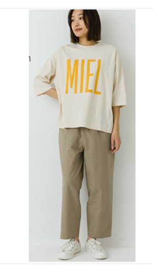 透け感のないやや肉感のある素材感で袖丈の長さがありそうでないカジュアルT