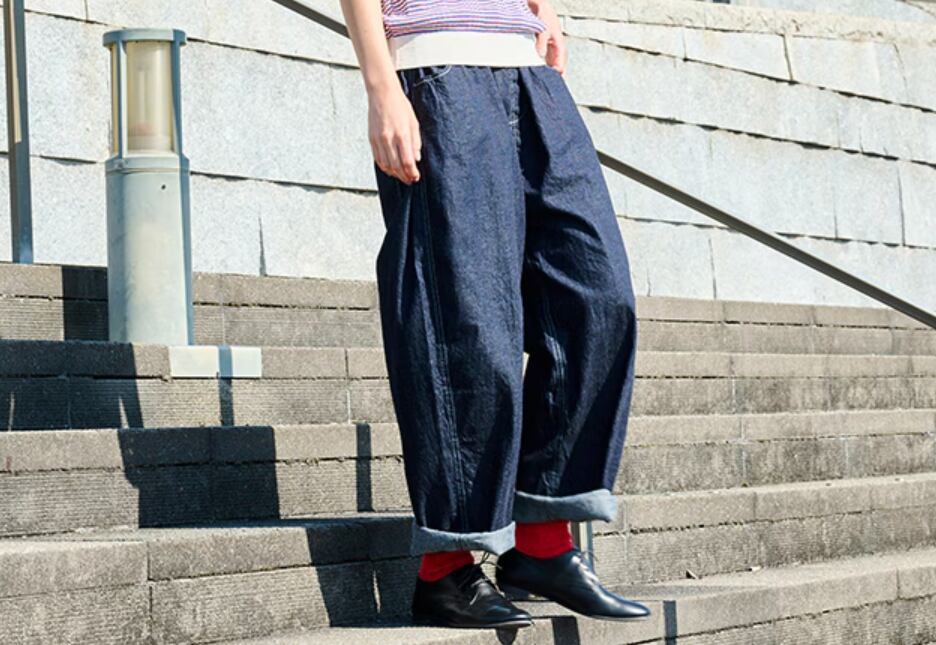 ゆったりとしたシルエットながら、すっきりときれいなラインを演出してくれる8オンスムラデニム 。