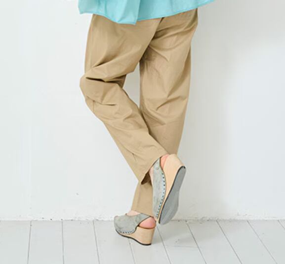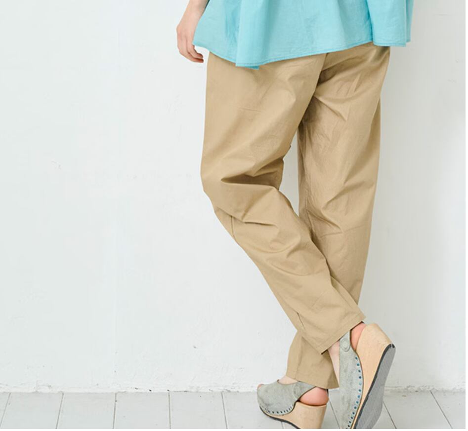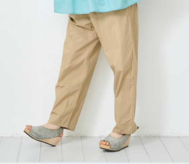 自然な光沢が上品で、きれい目にもカジュアルにも使える万能パンツです