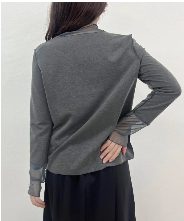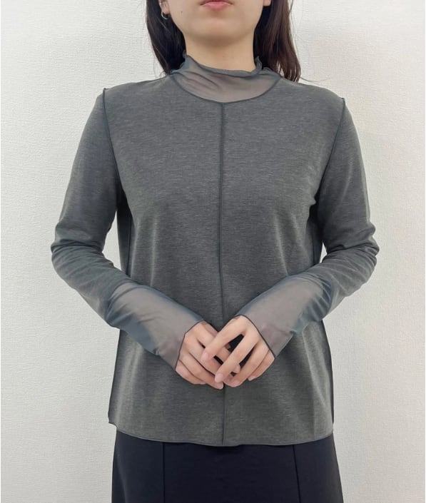 ①シアー切替ハイネックトップス